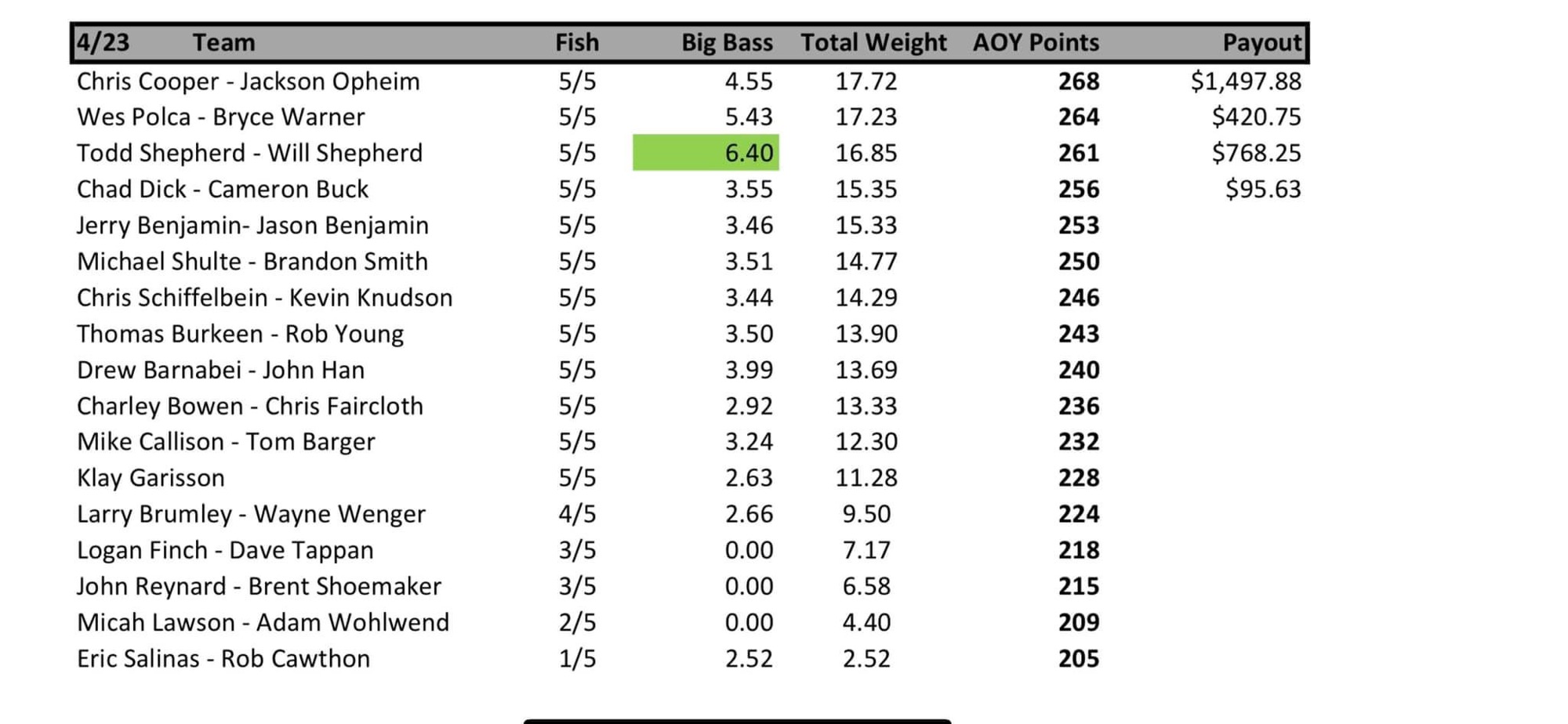 2023 Dale Willey Anglers of the Year